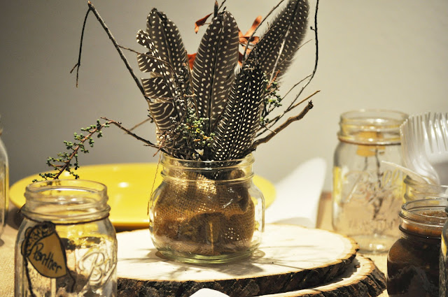 Jar names tags, garland, homemade flavored butters, full turkey dinner, sweet centerpiece, games and laughs... it was such a special night!